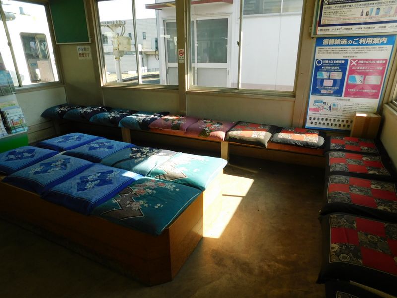 -- 毛呂駅の待合室に、おもてなしの座布団。14:49