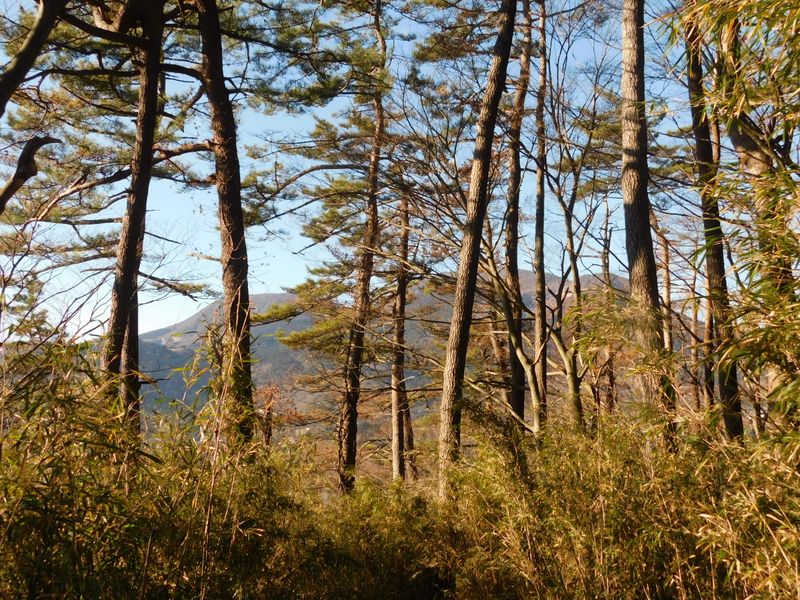-- アカマツ林の向こうに、駒ヶ岳と神山。