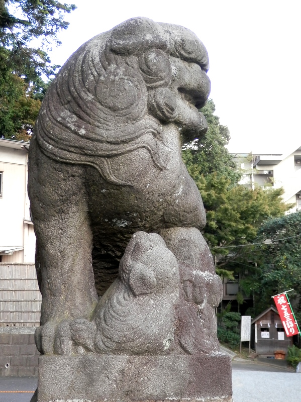 (下・左:)王子神社、右(向かって左)の狛犬親子。左(向かって右)の狛犬親子はこちら。(2011年10月22日撮影)