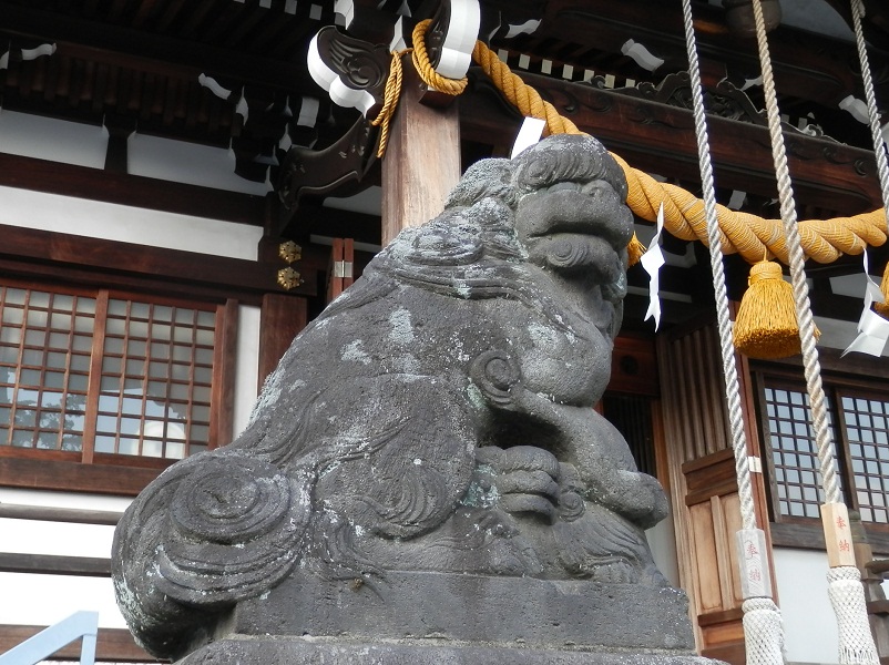左右の狛犬は、いずれも子連れ。境内の左奥にトイレあり。