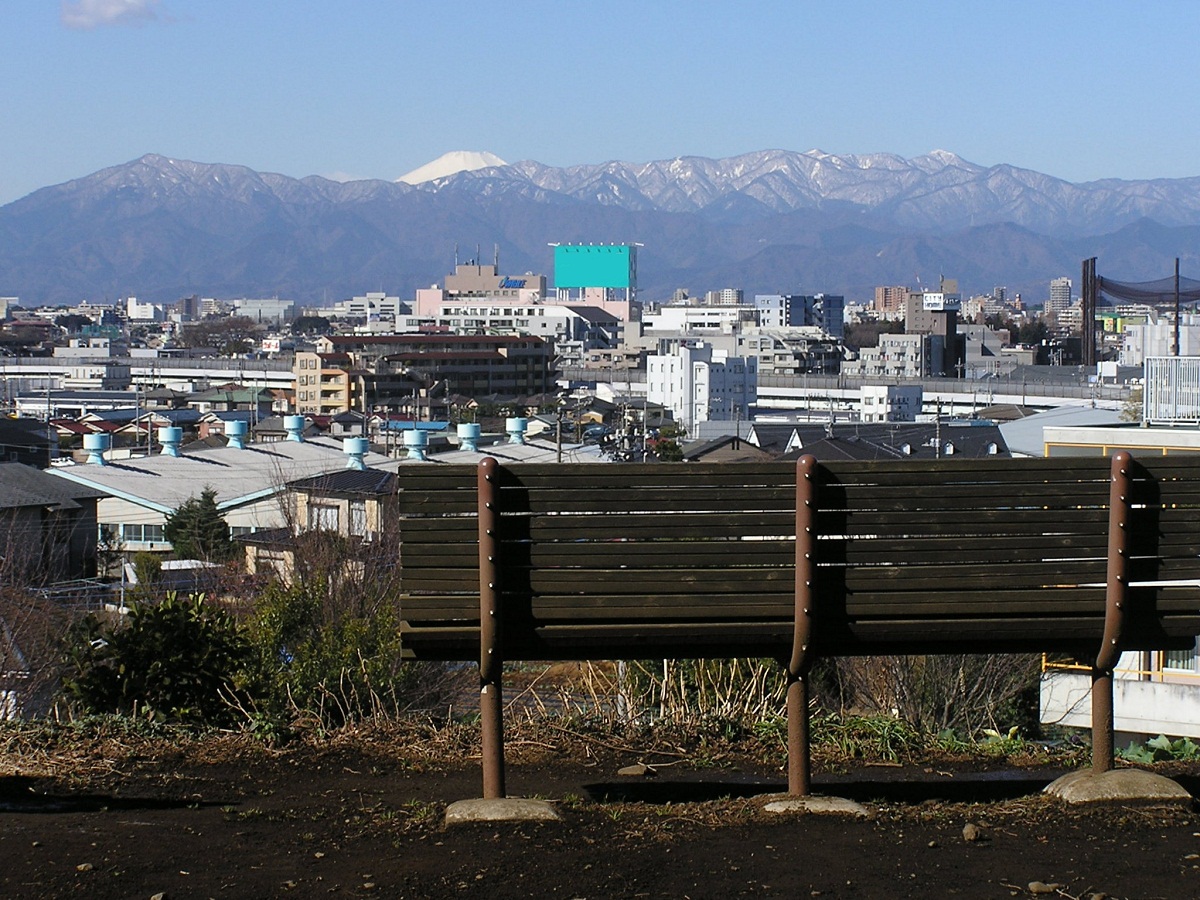 長津田みなみ台公園は高台にあり、西側が広い遊水池になっているので展望が良い。長津田の街、富士山、丹沢などが望める。公園に公衆トイレあり。