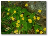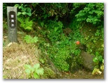 その先も続々と、初見の花が咲いていました。こうなったら、友たちには先に行ってもらいます。富士見坂に入り、もったいないけどぐんぐんと下降。晴れていれば、この坂から富士山が見えるのでしょうが、すぐ目の前にあるはずの苗場山すら見えません。20歳の慶大生の遭難碑があり、心を引き締められます。雷清水で休んでいた友たちに追いつくと、私もその清水でのどを潤しました。氷水のように冷たく、美味しい水です。コップと茶漉しも置いてありました。