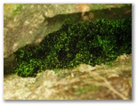 名残を惜しみながら、でも満たされた心で、下山の途に就きました。来た時と同じ祓川(はらいがわ)コースを、余裕を持って下ります。ある場所で、友の一人が、ある登山者から教えてもらったという、ヒカリゴケの自生する岩を教えてくれました。ワクワクしながら、その岩穴の奥の暗がりを覗き込むと、金緑色の苔がネオンサインのように光っていました。これは発光ではなく反射光なので、真っ暗闇では光らないそうです。撮った写真は、全部ブレていました。