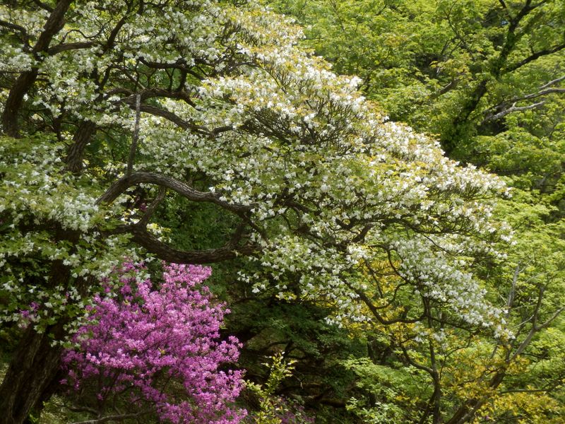 -- 遠目にはまだ見ごろのシロヤシオ。14:56