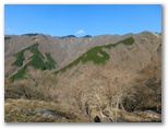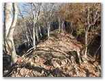 秦野市 ◆きょうから旧暦の11月、霜月である。気温もようやく平年なみの冬らしい値にまで下がってきた。◆秦野市の夜間に一時小雨の予報が出ていた。山では雪になる。よし、新雪をまとった富士山を眺めようと、まだ歩いたことのなかった仲尾根に狙いを定めた。◆大倉の「風の吊り橋」から、戸川林道を延々と歩く。林道歩きに飽きた頃、作治小屋の手前から仲尾根に取り付く。はじめの10分ほどは、針葉樹林の急斜面に付けられた狭いジグザグ道を慎重に登る。◆森林を抜けると、中小の岩石が混じる狭い尾根になった。と言っても、十分安全に歩ける幅がある。これを抜けると開放感いっぱいの草原状の美尾根になった。展望は360度。これまで親しんだ表丹沢の各所を手に取るように望める。来てよかった!◆富士山は予想通り、一晩で真っ白に衣替えした。ただ、富士山自体から発生する雲が、富士の顔を隠しているのが少々残念。その雲は長くたなびき、さながら噴煙の趣を呈していく。◆昼前から表尾根の上空に大きな重苦しい雲がかかり、山々を暗くした。写真も暗くなったのが惜しい。下山したら、この雲は消えていた。◆久しぶりに登山靴を履いたら、家を出て7時間経過した頃から両足の甲が痛くなり、ニノ塔尾根の下りが難行苦行になってしまった。ホネオレ度1段階アップ。冬場に備え、対策が必要。 ◎ 渋沢駅 6:48 == 7:00 大倉バス停 7:03 --- 7:43 竜神の泉 7:44 --- 8:48 作治小屋 8:52 --- 8:53 仲尾根取り付き 8:53 --- 10:44 烏尾山 10:55 --- 11:25 三ノ塔お地蔵 11:26 --- 11:35 三ノ塔 11:54 --- 12:09 ニノ塔 12:14 --- 13:56 葛葉の泉 14:03 --- 14:57 菩提原バス停 15:05 == 15:28 秦野駅 全7時間54分 単独 ❀❀❀ ❢❢❢
