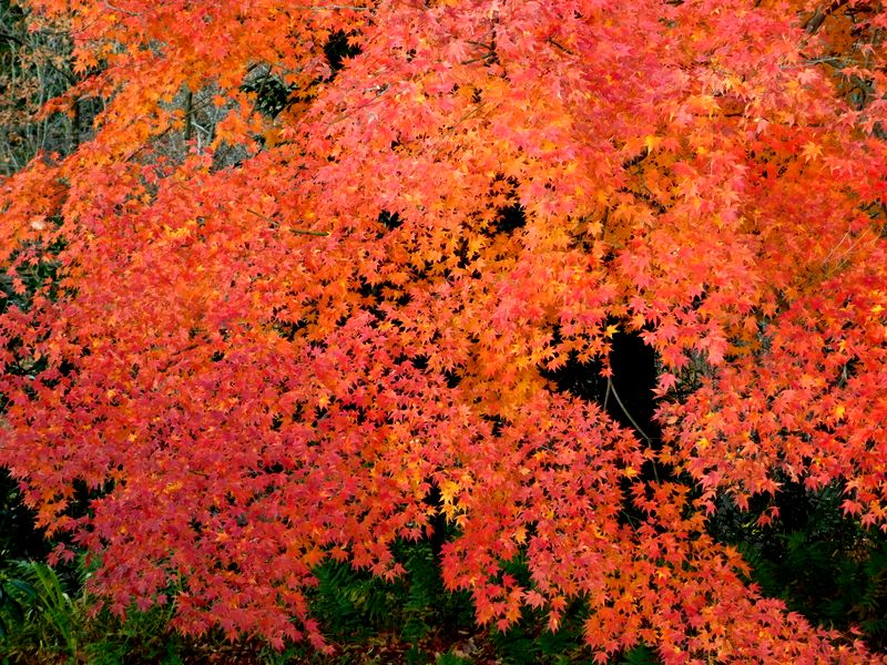 -- 水無川左岸に、まだ見頃のモミジ。7:11