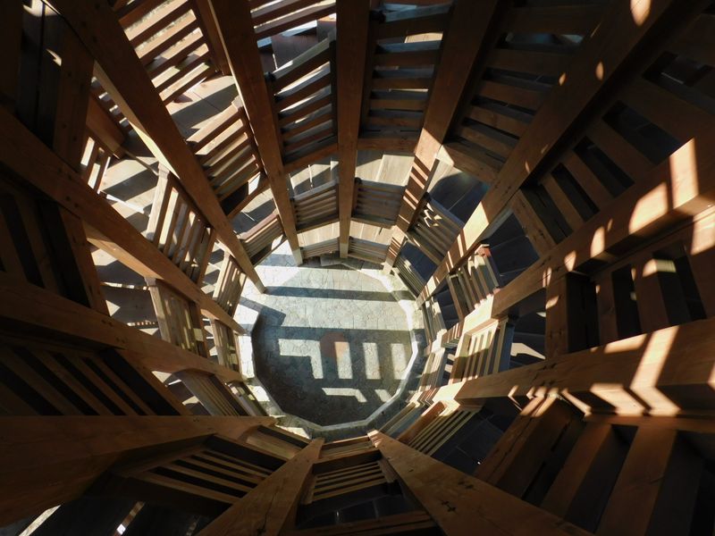-- 展望塔の内部を見下ろす。