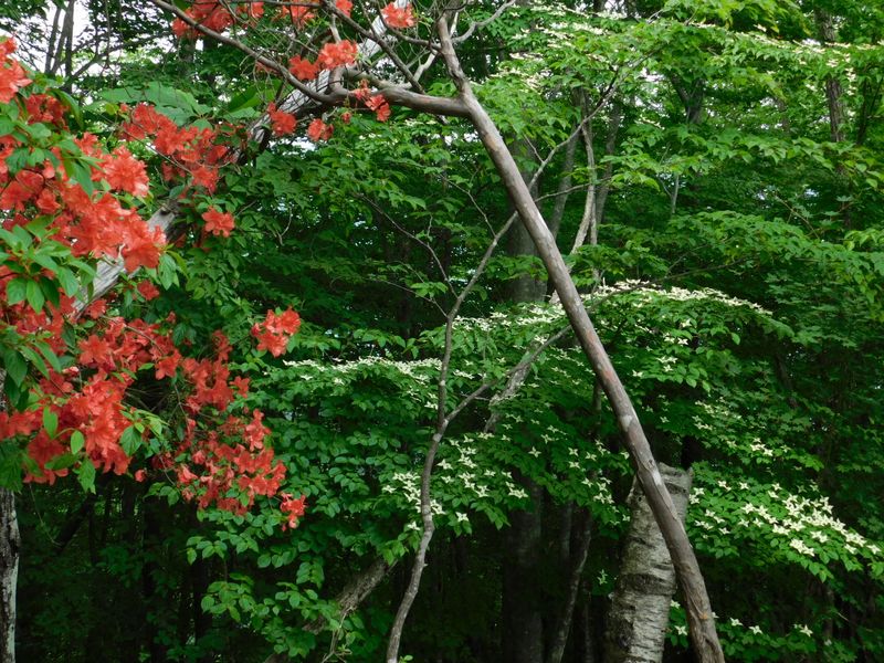 -- 西沢ノ頭にて、ヤマツツジとヤマボウシ。13:32