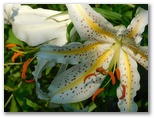 2017年7月21日(金) 概要を表示 畳む ◆日中はあまりに暑いので、午後遅く出る。◆ヤマユリの群落に目を見張る。他に、ヤブミョウガの群落、思いがけずハンゲショウの群落もある。◆トンボ類はメスばかりが目に付く。◆カラスウリはつぼみがあったので、最後にもう一度見に行った。◆ウバユリは葉が茶色になり始めていたので、次回は花が楽しみ。◆夕方の涼しい風に乗って、夏祭りの楽しそうな音が聞こえていた。 参考:森のマップ