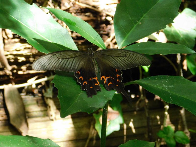 -- 左の尾状突起が壊れたオナガアゲハ。
