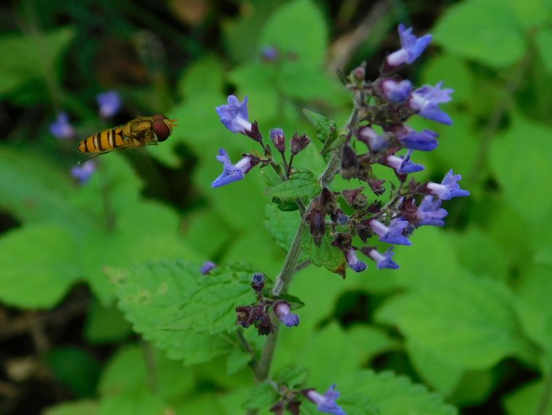 -- ホソヒラタアブとイヌヤマハッカ。