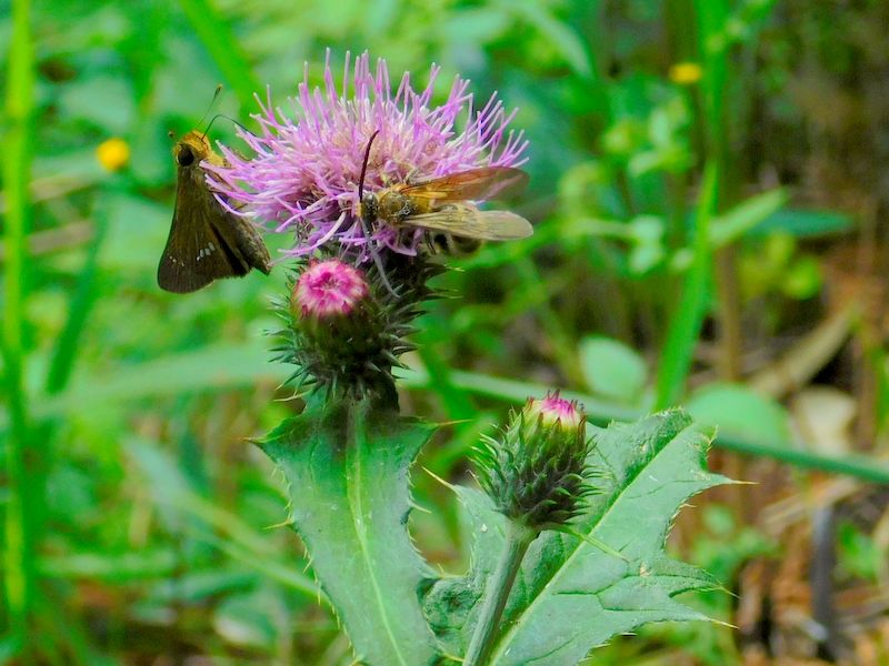 -- イチモンジセセリ(蝶)とビロードスカシバ(蛾)。