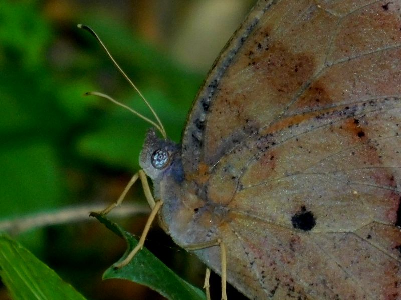 -- クロコノマチョウにフラッシュ光を当てたら目が青に。