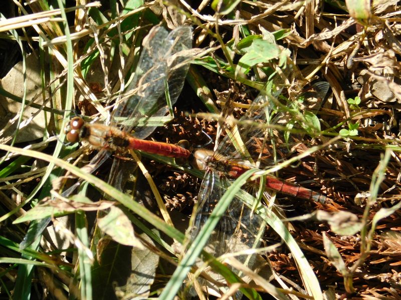 -- ♂(左)は飛び立ちたいのに♀が草を掴む。
