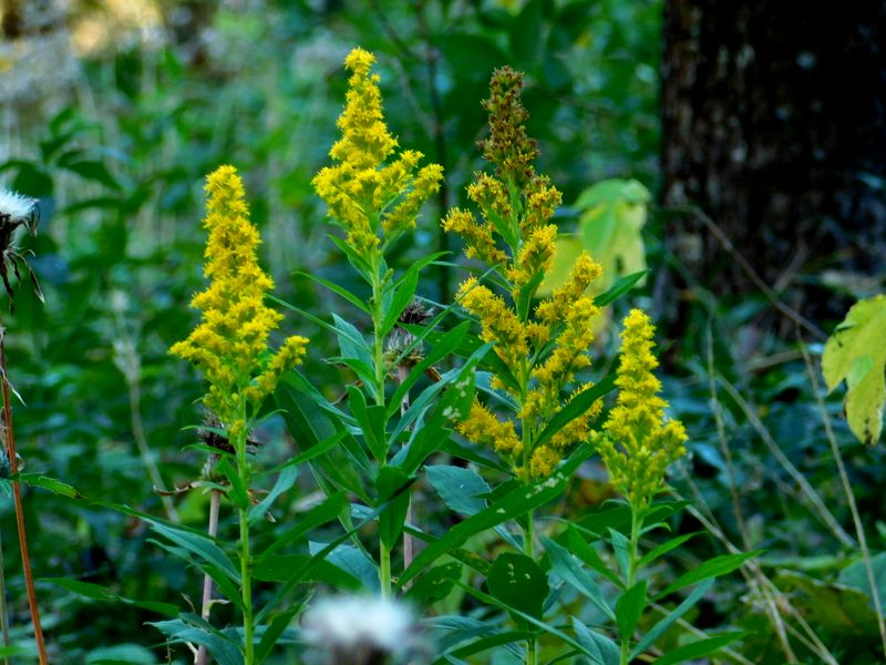 -- 日陰に咲き残ったセイタカアワダチソウ。