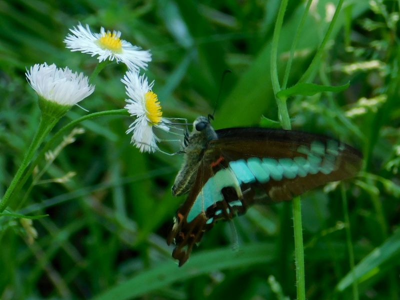 -- 日陰で撮った、アオスジアゲハとヒメジョオン。
