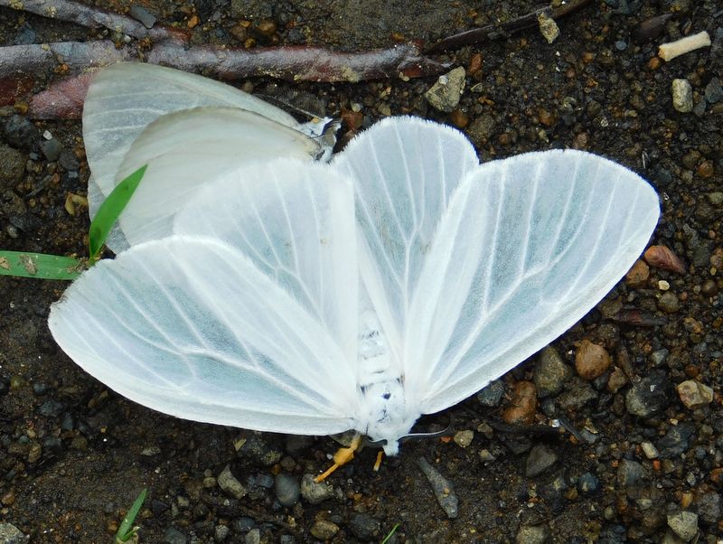 -- キアシドクガのカップル。手前の大きい方が♀。