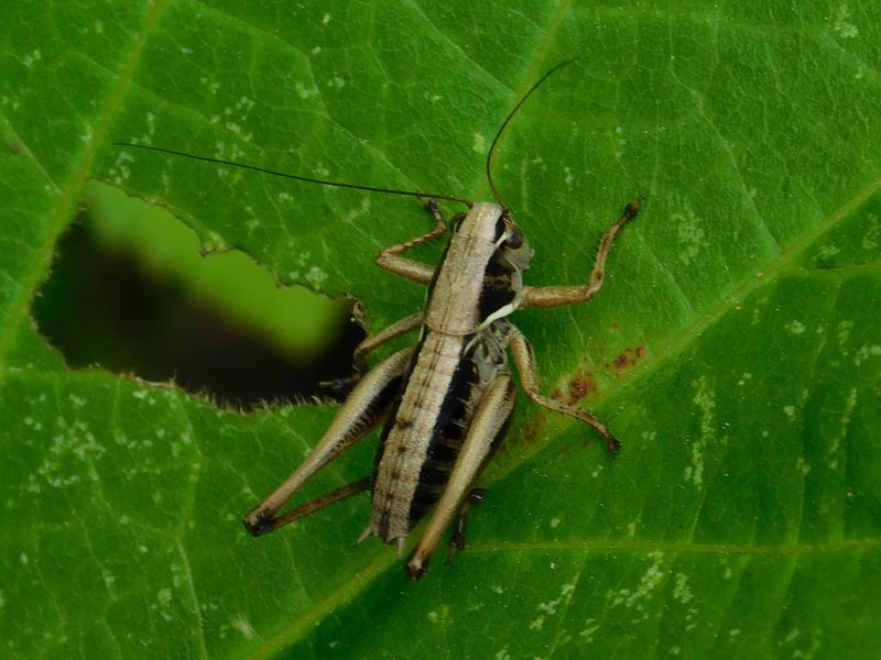 -- ヒガシキリギリス同一個体。ジャンプ態勢を取る。