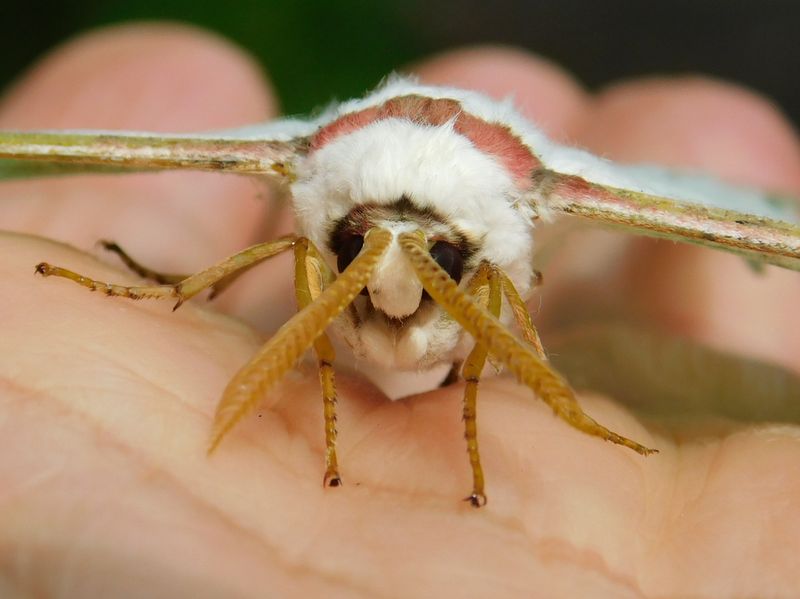 -- 瀕死のオオミズアオ♂の顔。