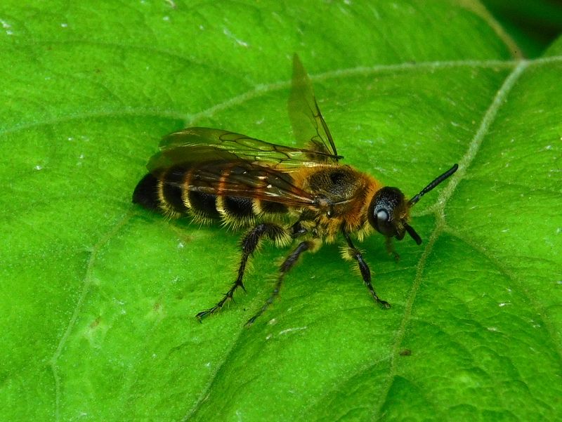 -- キンケハラナガツチバチ。左翅が変だ。
