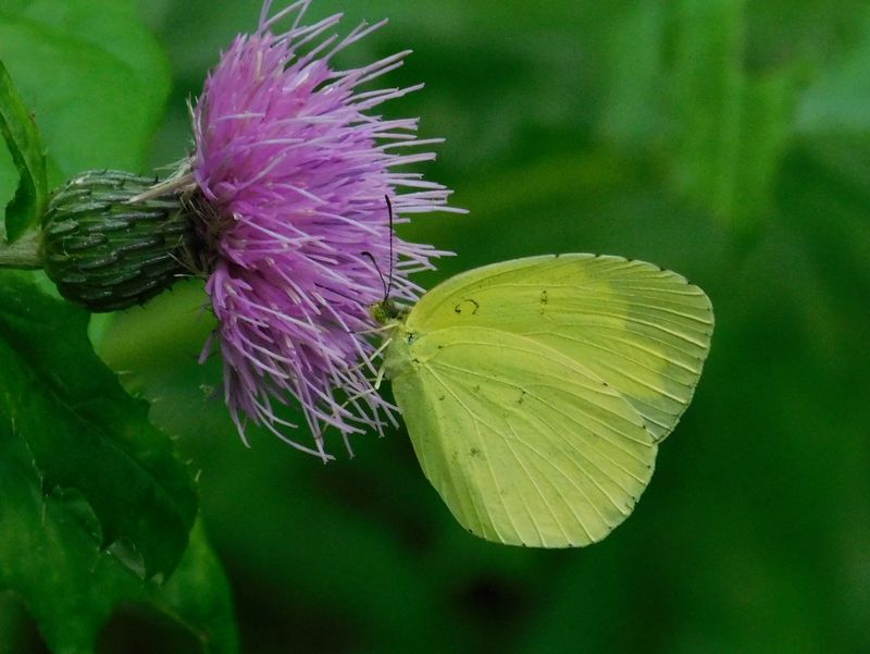 -- キタキチョウ。ノアザミの蜜に届くのかな?