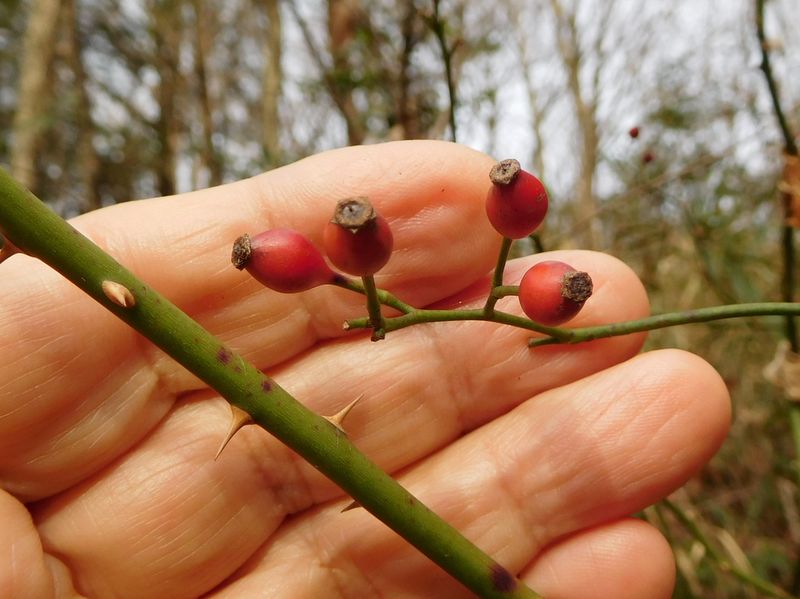-- ノイバラの実に手を添えてピントを合わせる。14:57