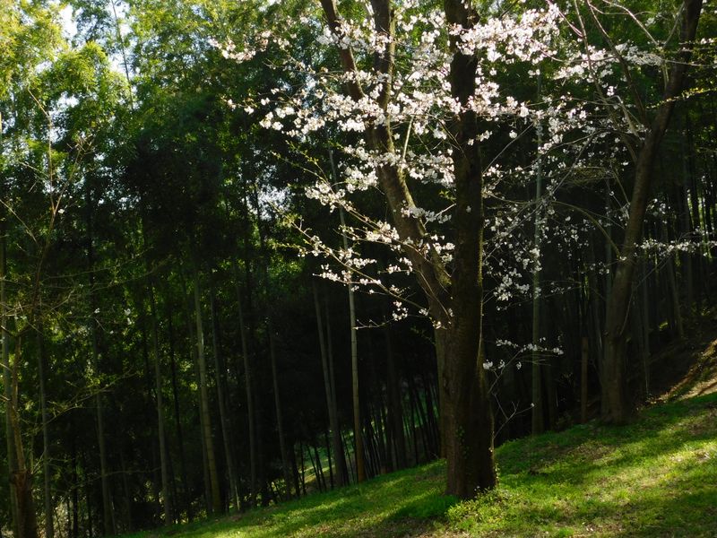 -- 竹林を背景に。