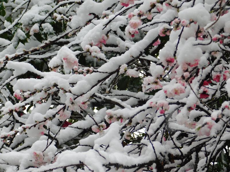 -- 花より雪の方が多い。