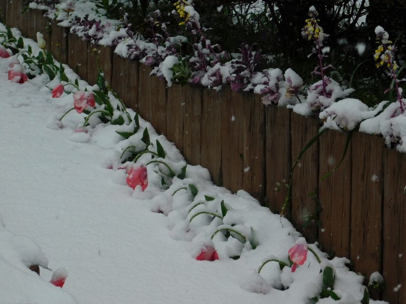 -- うな垂れるチューリップ。