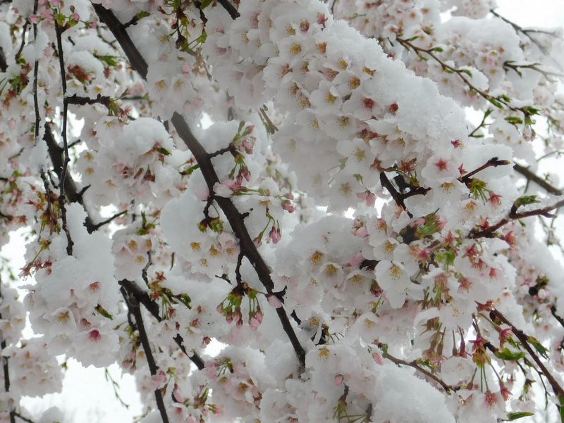 -- ソメイヨシノ。花も雪も華やかに。