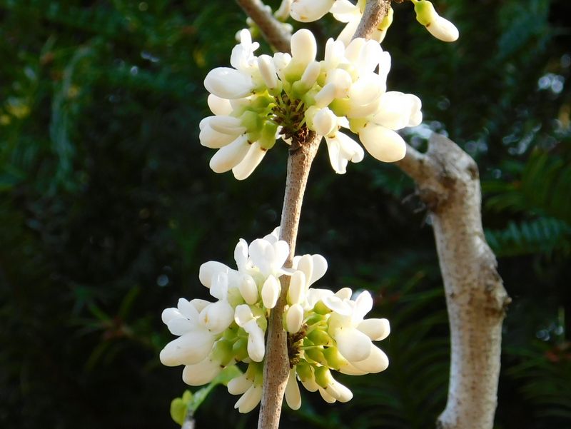 -- 白花のハナズオウ。マメ科。奥津邸の庭。