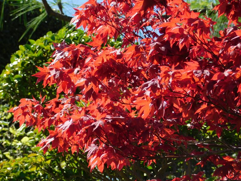 -- 春に真っ赤なモミジ@民家の庭。