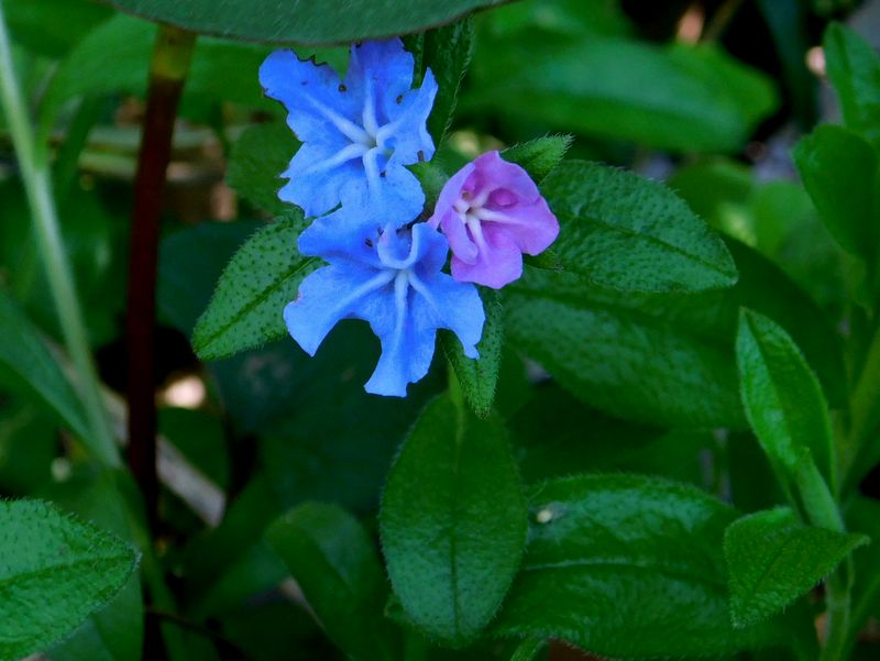 -- ホタルカズラの虫食い。紫の花は新しい。
