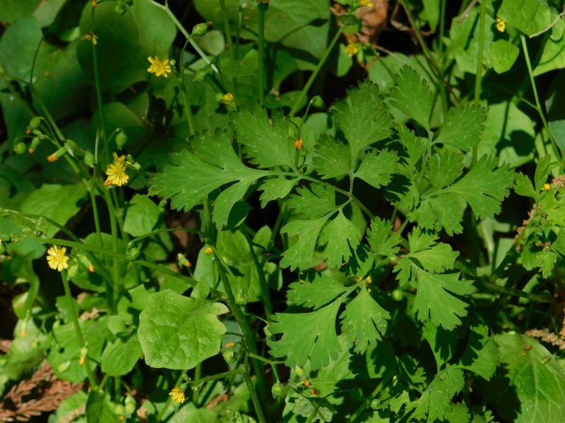 -- ヤブニンジンの葉とヤブタビラコの花。