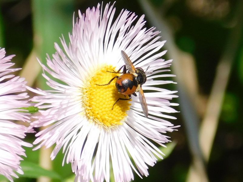 -- マルボシヒラタハナバエのお尻。