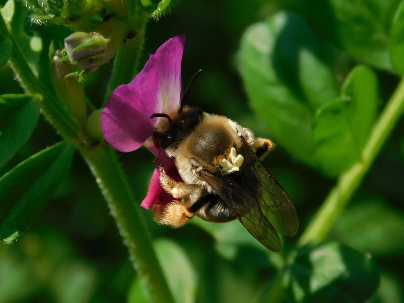 -- ハキリバチの一種。背に付いているものは何?