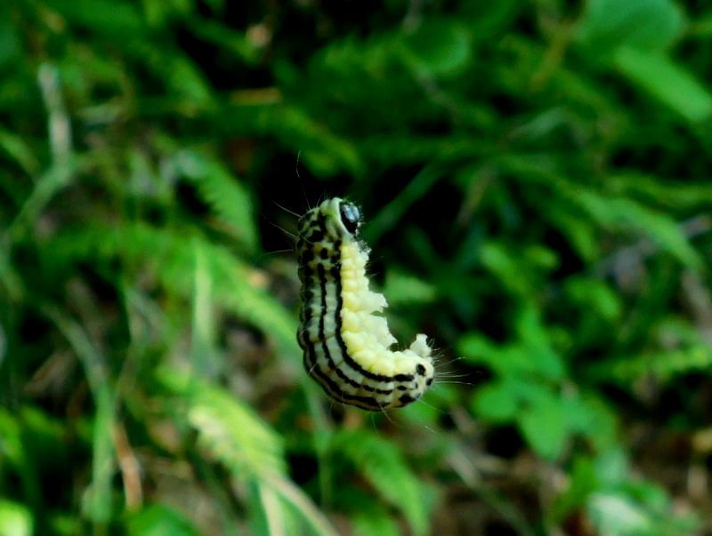 -- ミノウスバの幼虫が、ぶら〜り。