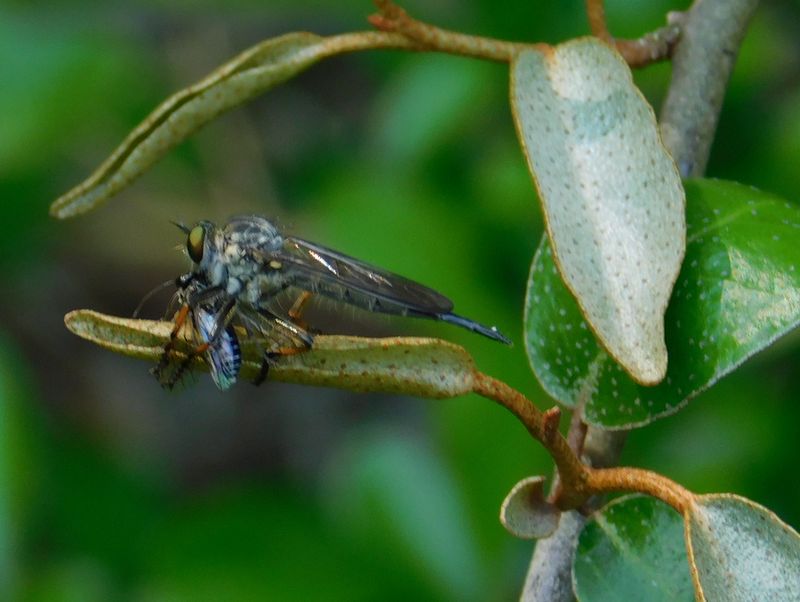 -- シオヤアブが、蜂を捕食。