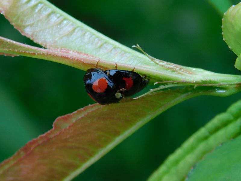 -- ナミテントウの交尾態。@モモの木。