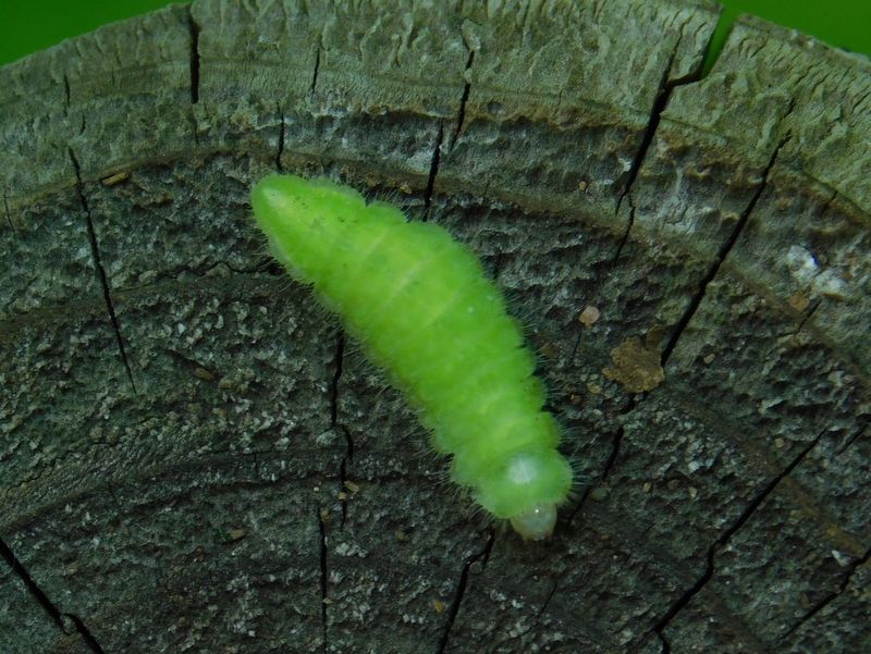 -- ムラサキシジミ、またはムラサキツバメの幼虫。