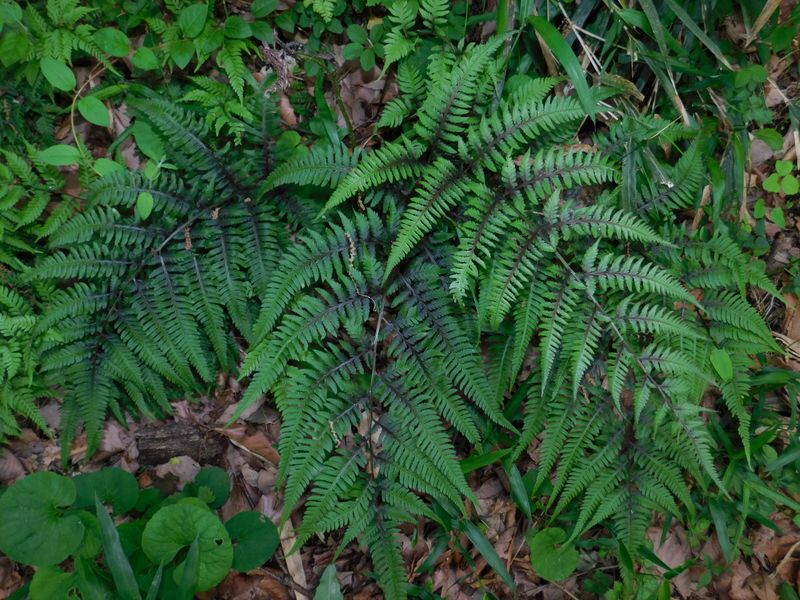 -- 葉軸、小羽片の一部が紫色のシダ。
