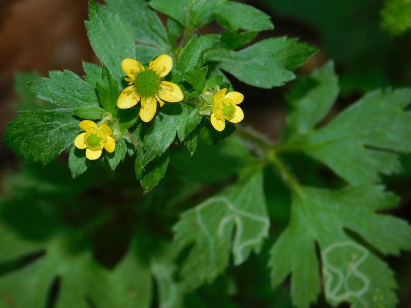 -- キツネノボタンの葉に絵描き虫。