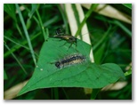 2020年5月14日(木) ◆昨晩までに、在宅ワークが順調に仕上がった。そしてきょうは、もったいないほどの快晴日。空気は爽やかだが、気温が高くなりそうだというので、朝の部と昼の部との2ラウンドに分けて新治市民の森に行った。ほかに行けるところはない。◆5時半に市民の森入口に到着。人の影はないが、里山は鳥たちの声で大賑わいだ。私に分かるのは、ホトトギス、コジュケイ、ガビチョウ、シジュウカラ、ウグイスくらい。◆先回の訪問から中5日置いて、キアシドクガの幼虫と蛹を多く目にする。この分なら、今年も大発生だ。来週はモンシロチョウのような白い蛾がヒラヒラと飛び交うだろう。◆以前にルリタテハが飛び出してきた場所を調べてみると、3齢または4齢と思われる幼虫の他に、2齢と5齢の幼虫も見つかった。これから晩秋まで、次々と羽化してくれるのが楽しみだ。◆イボタガの幼虫は、3齢になっていた。ルリタテハの幼虫ほどではないが、怪異な姿をしているので、大きな食痕がなくても見つかる。ゼフィルスと合わせ、採集人(つまり密猟者)に見つからないことを願うばかりだ。