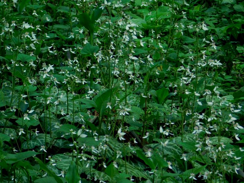 -- 林床にユキノシタの群落。