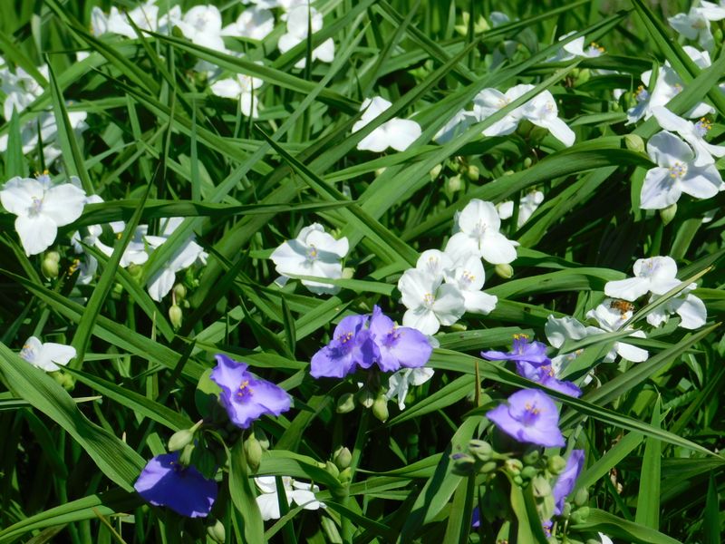 -- ムラサキツユクサの紫花と白花。
