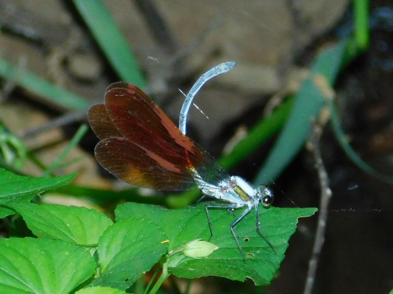 -- カワトンボの仲間♂が屈伸運動、1!
