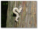 2020年5月17日(日) ◆昨日の雨が上がり、きれいな青空が出た。いそいそと市民の森に向かう。◆神奈川県はまだ緊急事態宣言が続いているのだが、市民の森は平時の晴天の土休日なみの賑わいを見せていた。マスクなしの人が増えたのが気になる。気の緩みでなければいいのだが。◆キアシドクガが空を飛び交っている。今年の羽化シーズンが始まったのだ。これからしばらく、真っ白な蛾たちの婚活の舞を見ることになる。◆ルリタテハの幼虫と、イボタガの幼虫がどんどん成長している。みんな食欲が旺盛になる頃だ。特にサルトリイバラの食痕が目立ち、怪異な姿の幼虫が容易に見つかる。