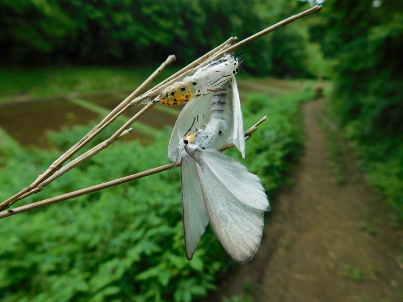 -- 羽化直後の♀(上)と交尾する♂(下)。