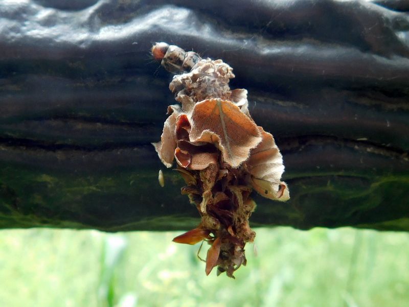-- ニトベミノガが擬木を移動中。
