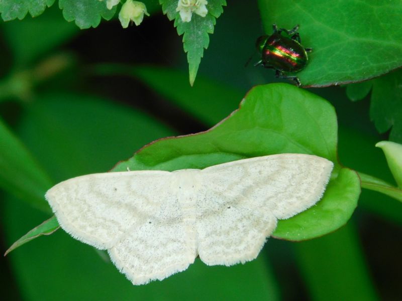 -- ウスキクロテンヒメシャクとアカガネサルハムシ。